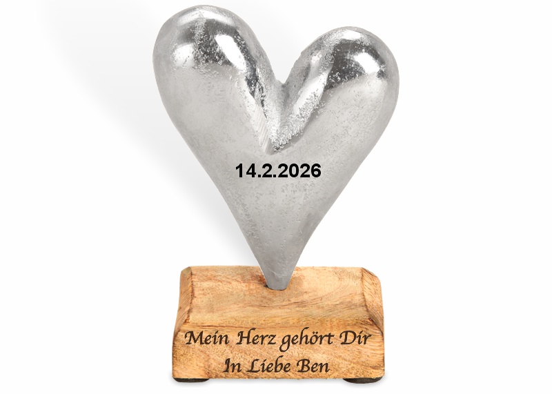 Das edle Metall-Herz auf einem massiven Mangoholz-Sockel ist ein ganz besonders persönliches und außergewöhnliches Geschenk zu beliebigen Anlässen.